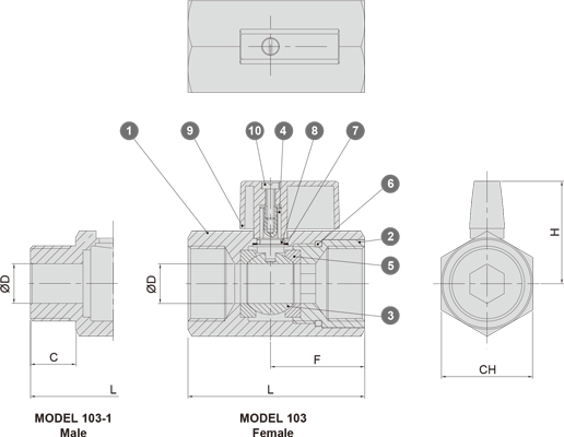 型號 103 / 103-1 一片式迷你牙口球閥 (內外牙)